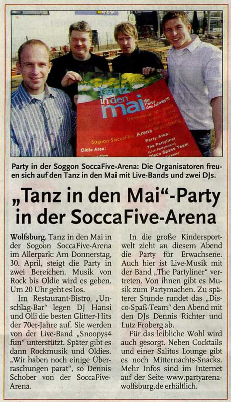 Presseberichte zur 1. Sonderveranstaltung - Tanz in den Mai - in der Socca-Five vom 30.04.2009