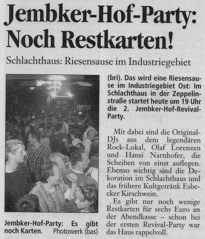 Presseberichte zur 2. Jembker Hof Revival Party vom 04.03.2006