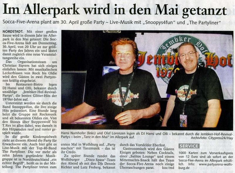 Presseberichte zur 1. Sonderveranstaltung - Tanz in den Mai - in der Socca-Five vom 30.04.2009