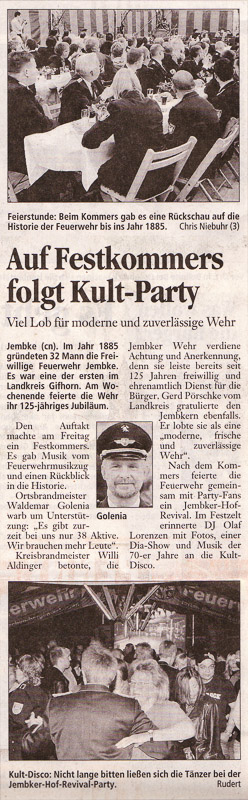 Presseberichte zur 2. Sonderveranstaltung - 125 Jahre Freiwillige Feuerwehr Jembke - vom 28.05.2010